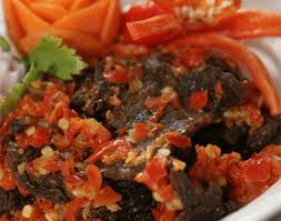 - Angkat daging dendeng yang sudah digoreng, kemudian masukkan cili kering yang sudah dikisar dengan bawang merah dan putih.Masukkan jugak bawang besar dan halia yang dihiris nipis tadi.Masak sehingga naik bau.